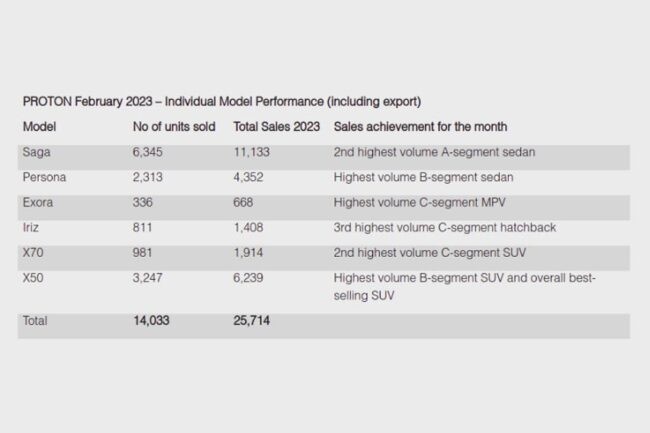 - In total Proton sold 25,174 cars in total in the first two months of 2023